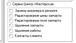 А каким образом запретил удалять запчасти "на крестик"? Подскажи, а то я что-то не нахожу в привилегиях. Запчасти - возврат и запчасти - списание у меня птички сняты. Остальные нужны. |