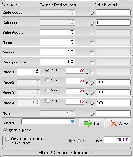 Сделал импорт и цена продажи посчиталась неправильно вообще непонятно что выводит например цена прихода 80,1 а цена1: 4,60 что оно считает ?? |